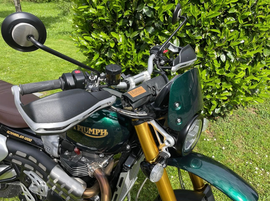 There are a lot of different ways to attach the tool roll to your bike. Below, you can see how Freddie attaches it to his Bonneville with a strap, and to a Harley Davidson Fat Bob without a strap, just using the tie. It’s also easy to clean after a long ride; just wipe it with a wet cloth.
